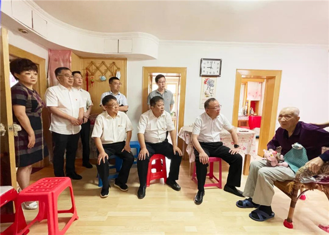 看到國(guó)資委主任及城投集團(tuán)總經(jīng)理親自上門(mén),李德春老人的愛(ài)人和女兒非常感動(dòng)。孫百如拉著老人的手,關(guān)切地詢(xún)問(wèn)他的生活起居、子女工作等情況,并了解到老人腿腳不便,需要常年雇人照顧老人起居生活。