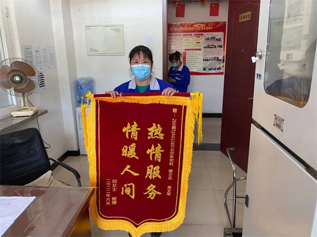 第二天,乘客劉女士專程來到260車隊(duì),將一面寫有“熱情服務(wù) 情暖人間”字樣的錦旗交到了車隊(duì)并說道:“非常感謝車隊(duì)培養(yǎng)了這么優(yōu)秀的駕駛員,因節(jié)日期間急著補(bǔ)一批貨,又趕上家里缺人手,我才一個(gè)人前往五愛市場(chǎng)。本來還擔(dān)心駕駛員不會(huì)讓我上車,或者嫌棄我耽誤時(shí)間,沒想到遇到了兩位熱心腸的駕駛員,他們耐心細(xì)致的幫助我解決了困難,讓我倍感溫暖。為表感激之情,我特意趕制了一面錦旗了表寸心,謝謝你們!”