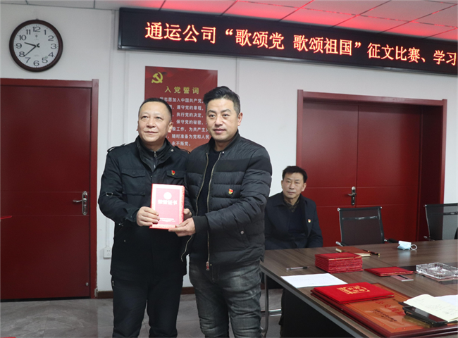 1月12日上午,通運(yùn)公司在一樓會(huì)議室召開“歌頌黨 歌頌祖國(guó)”征文比賽、學(xué)習(xí)強(qiáng)國(guó)學(xué)習(xí)標(biāo)兵頒獎(jiǎng)儀式,公司領(lǐng)導(dǎo)班子及各支部書記、獲獎(jiǎng)職工代表參加,共30余人。