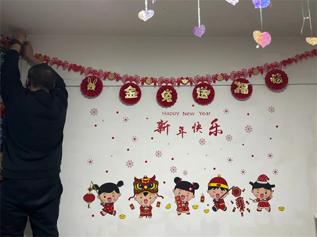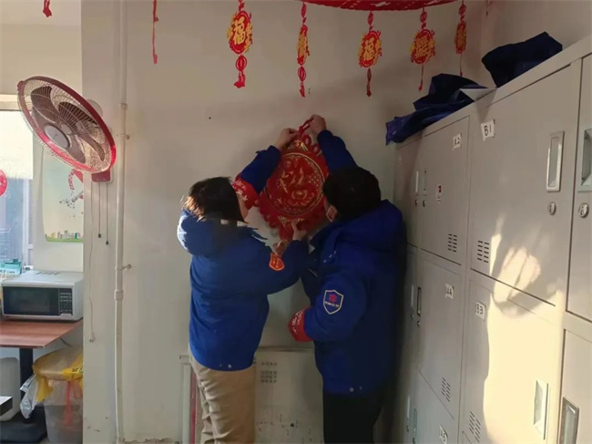 貼對聯(lián)、掛福字,通運(yùn)公司駕駛員歡喜過大年。