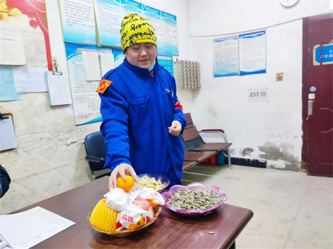來到105路車隊(duì),一串串拉花、氣球、春聯(lián)和福字等年味氣息撲面而來,處處呈現(xiàn)出喜氣洋洋歡度春節(jié)的濃厚氛圍。