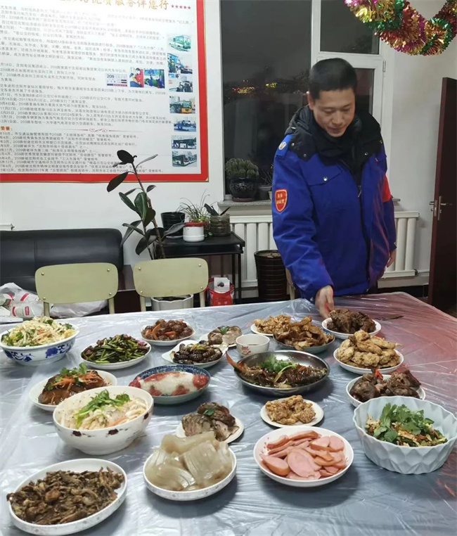 除夕當(dāng)天,各車隊(duì)為堅(jiān)守崗位的駕駛員準(zhǔn)備了豐盛的年夜飯,車隊(duì)親如一家,其樂融融。
