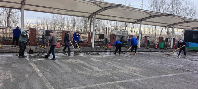 2月19日,沈城下起了春節(jié)后的第一場雪,為減少降雪帶來的安全隱患,各車隊組織職工開展掃雪活動,同時做好低溫降雪天氣防范應對工作,保障市民安全舒適出行。
