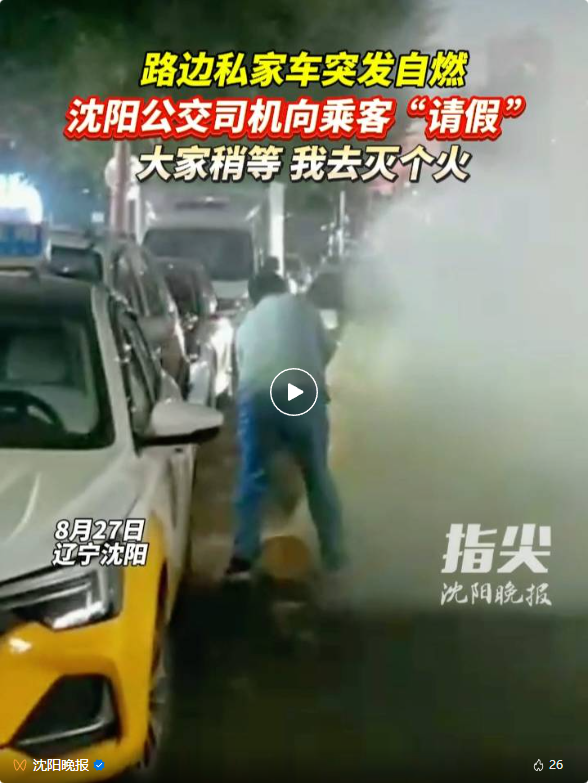 面對(duì)乘客的贊譽(yù)和公司的肯定,今年44歲、開了13年公交車的駕駛員侯海峰表示:“這都是舉手之勞,在外遇到困難,咱能搭把手就搭把手,雖然都有保險(xiǎn),但誰也不能眼看著車著火。我相信咱沈陽每位公交駕駛員遇到這情況都能沖,我們有市民乘客的理解,有公司的專業(yè)培訓(xùn),沒理由不往前沖!”