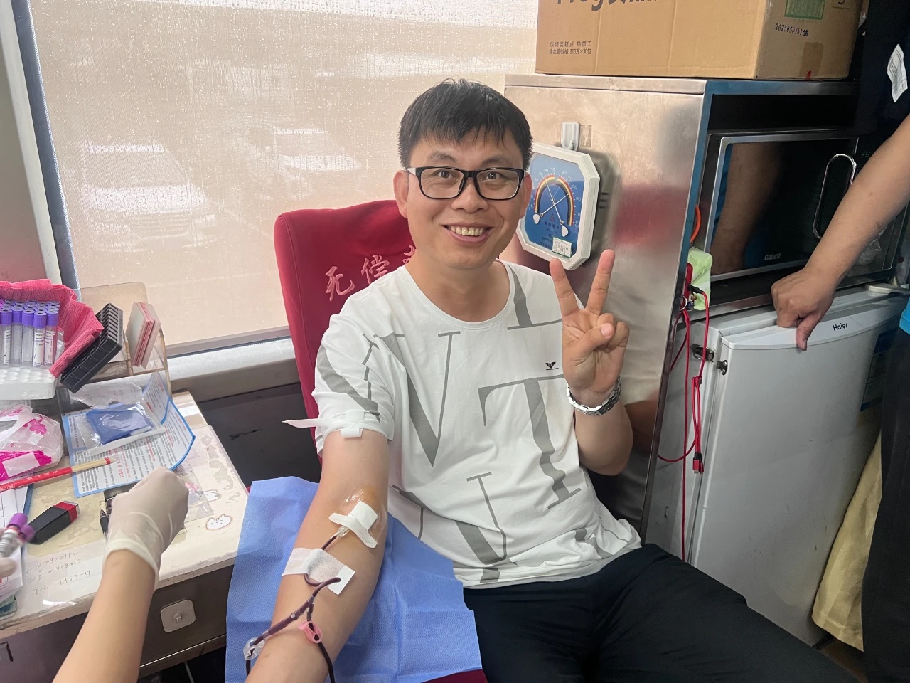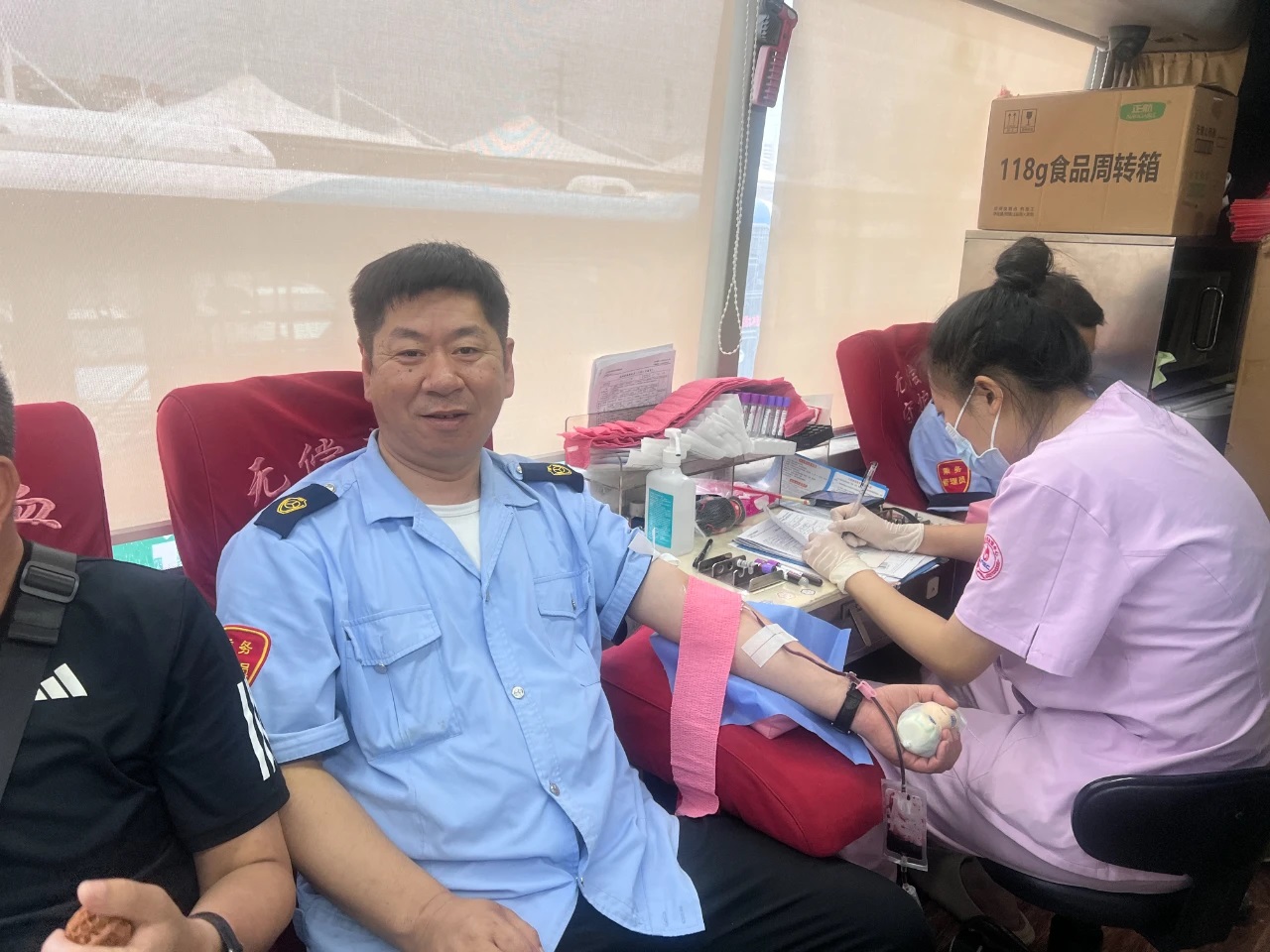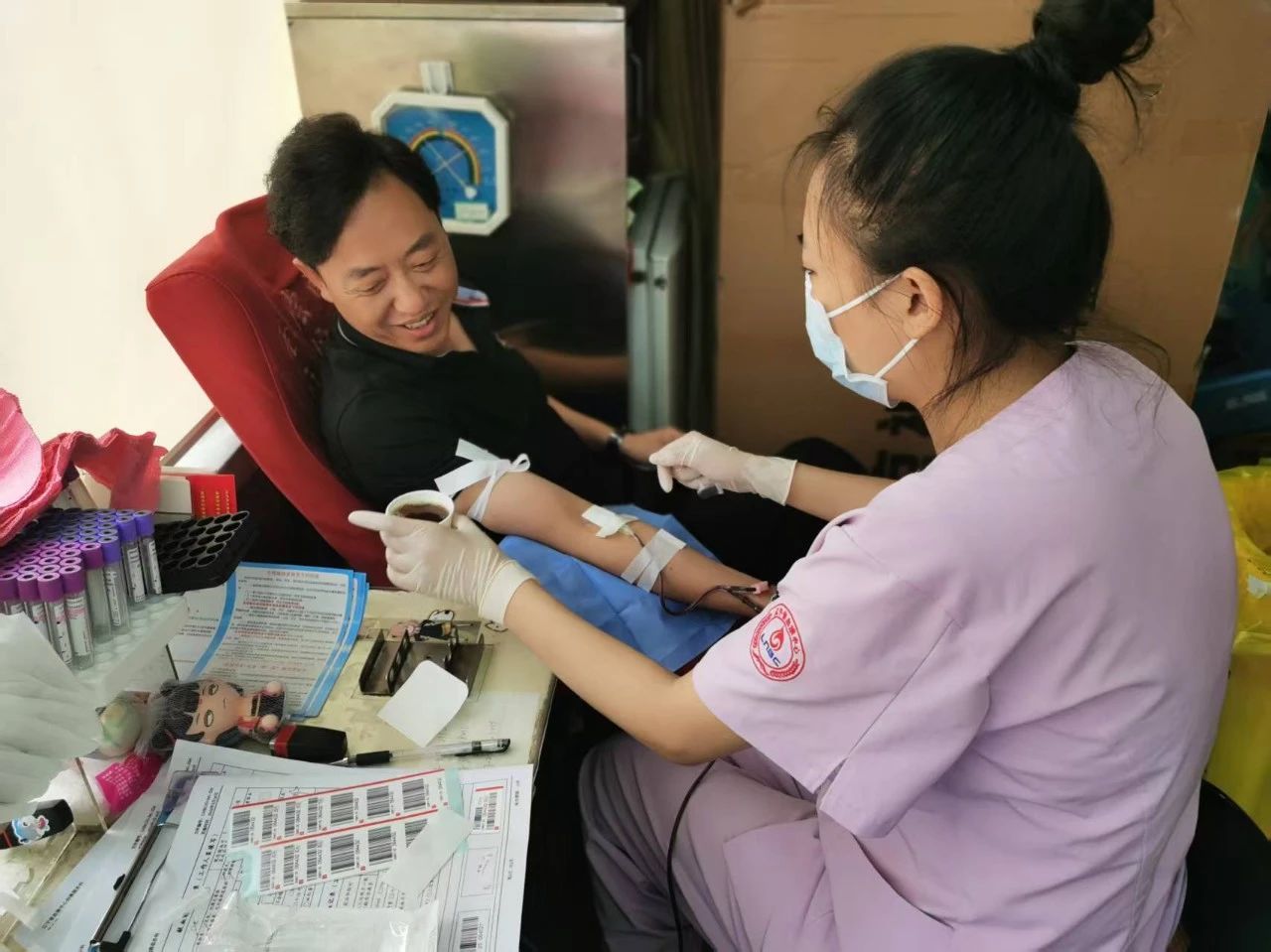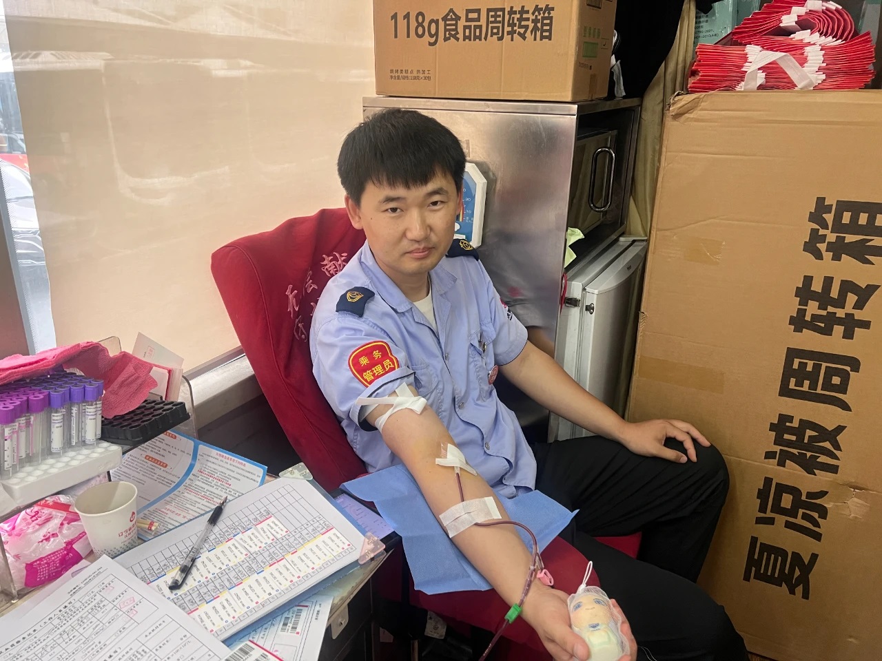 活動(dòng)現(xiàn)場(chǎng)溫馨有序。工作人員早早到位,引導(dǎo)志愿者們依次完成信息登記、健康檢查、血液初篩等環(huán)節(jié)。采血車直接駛?cè)敫鞔髨?chǎng)區(qū),方便職工參與。志愿者們紛紛挽起袖子,勇敢地伸出臂膀。隨著采血針的輕輕刺入,一袋袋承載著深情厚誼的熱血緩緩流入儲(chǔ)血袋中。