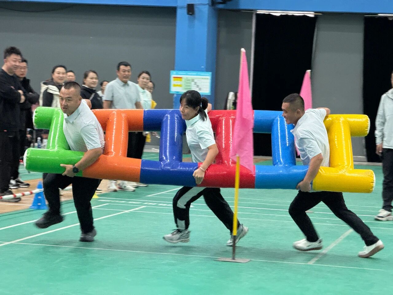 現(xiàn)場氣氛熱烈,加油聲、吶喊聲與歡笑聲此起彼伏,整個運(yùn)動場沉浸在一片熱烈而融洽的歡樂氛圍中……